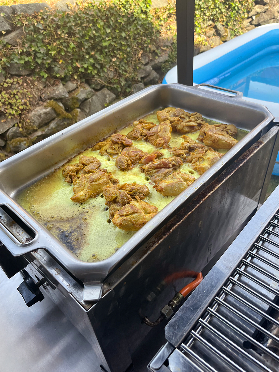 Mit unserem großen Holzkohlegrill, dem Weber Pellet Smoker, einem Napoleon Gasgrill für Lachs auf der Planke sowie unserer mobilen Pfannenstation zaubern wir authentische und abwechslungsreiche