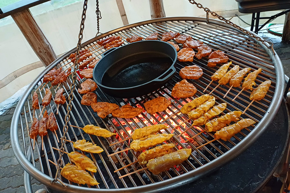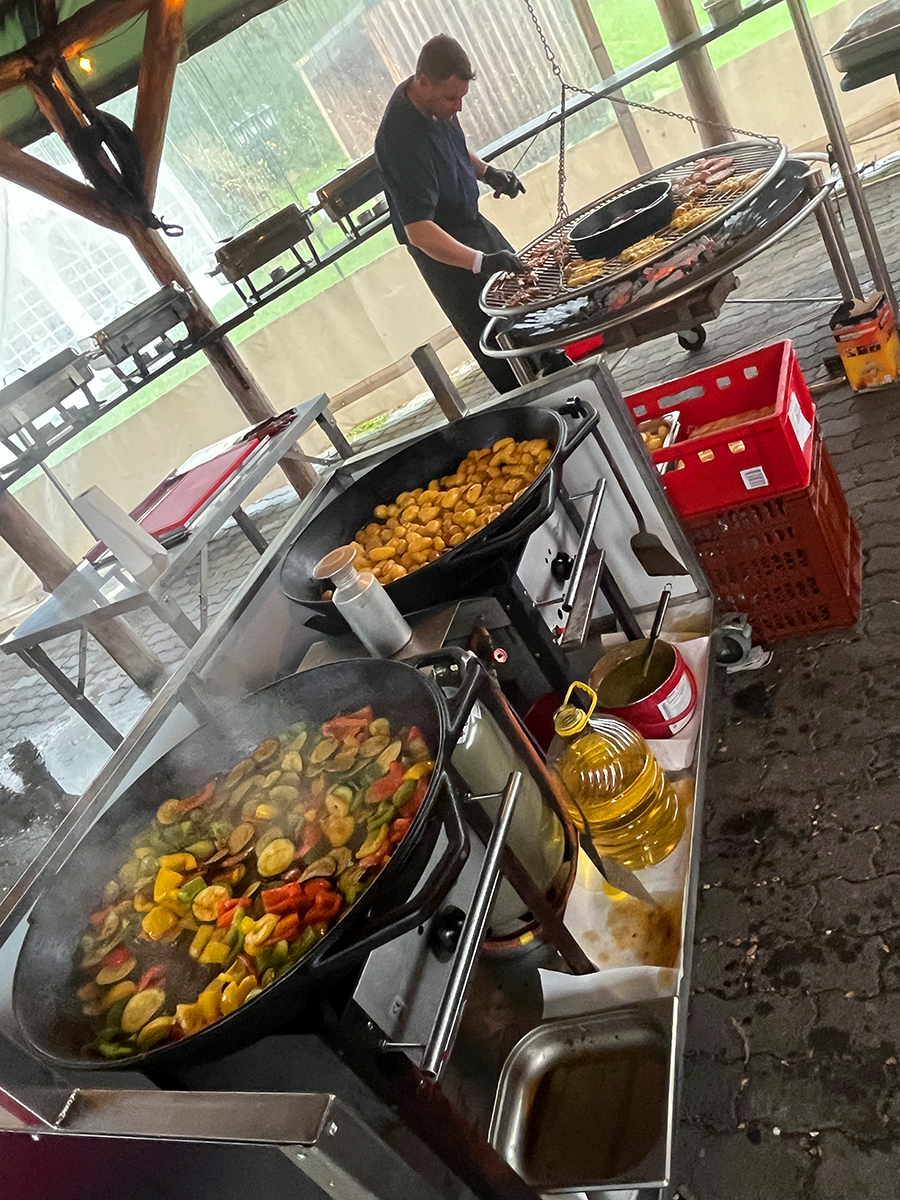 Ein besonderes Highlight unseres Angebots ist unser Grill-Buffet. Wir bereiten die Speisen direkt vor Ort zu – frisch und live, sodass Ihre Gäste Teil des Genusses werden.